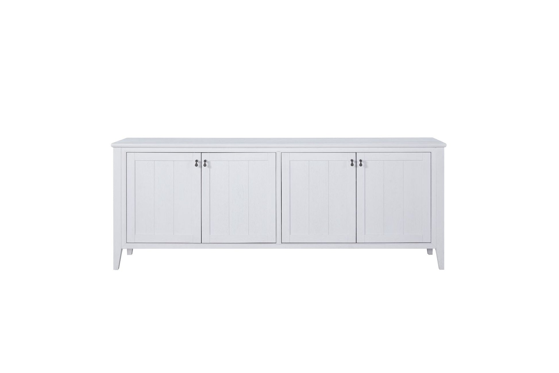 The Pleasant Hill Ivory 84" Console with Power Outlet blends timeless style with modern convenience. Featuring two spacious cabinets with double-paneled doors and sleek black hardware, this piece offers ample storage for media, games, or living room essentials. Its soft ivory finish adds a clean, airy feel, while the built-in power outlet keeps devices charged and cords organized. Whether used as a media stand or statement console, it delivers both form and function with understated elegance.