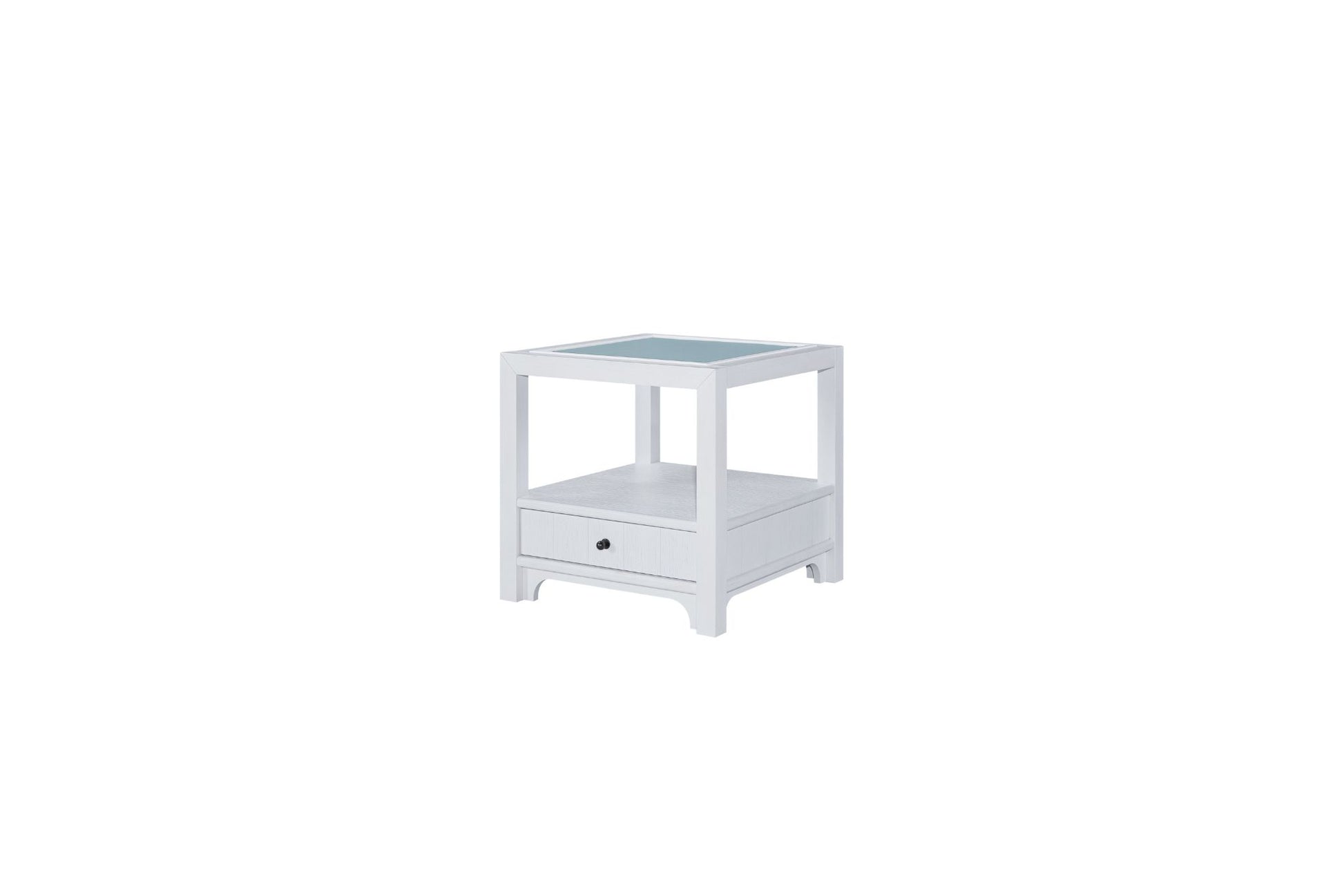 The Pleasant Hill Ivory End Table with Matte Glass Top adds a soft and sophisticated touch to your space. Featuring a smooth matte glass surface and a fresh ivory wood finish, this table blends elegance with everyday function. A single drawer keeps essentials neatly tucked away, while the open bottom shelf offers room for books or décor. Its clean lines and light tones make it a versatile accent beside a sofa, chair, or bed.
