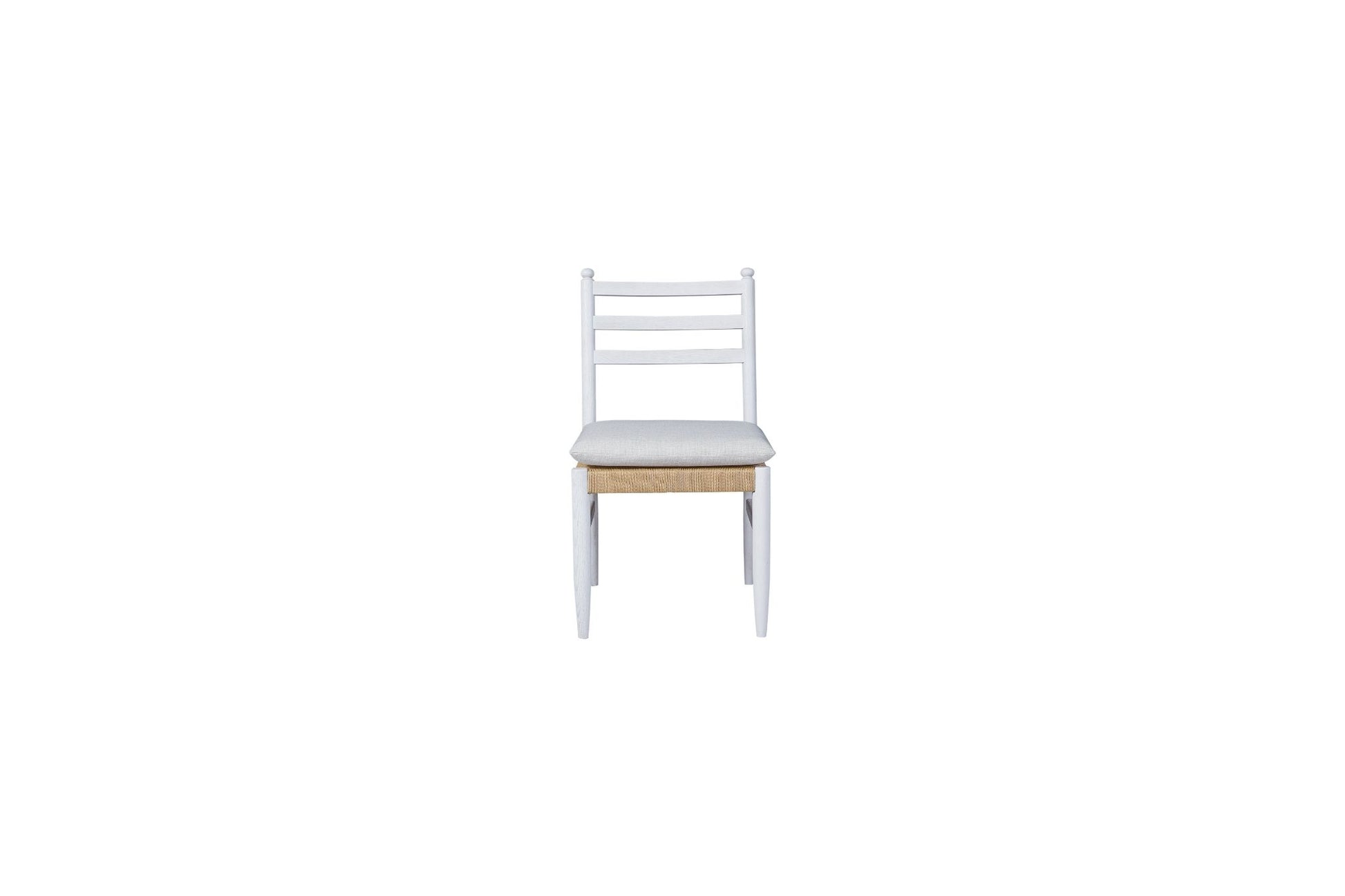 The Pleasant Hill Ivory Ladder Back Chair combines classic charm with natural texture for a fresh, refined look. Crafted from American white oak in a soft ivory finish, it features an open ladder back design and a rattan seat that adds organic warmth. A removable grey upholstered cushion offers added comfort and a subtle contrast to the light frame. This thoughtful blend of materials creates a casually elegant feel that complements a variety of dining spaces. Perfect for everyday use or special gatherings, it’s a timeless addition to your home.
