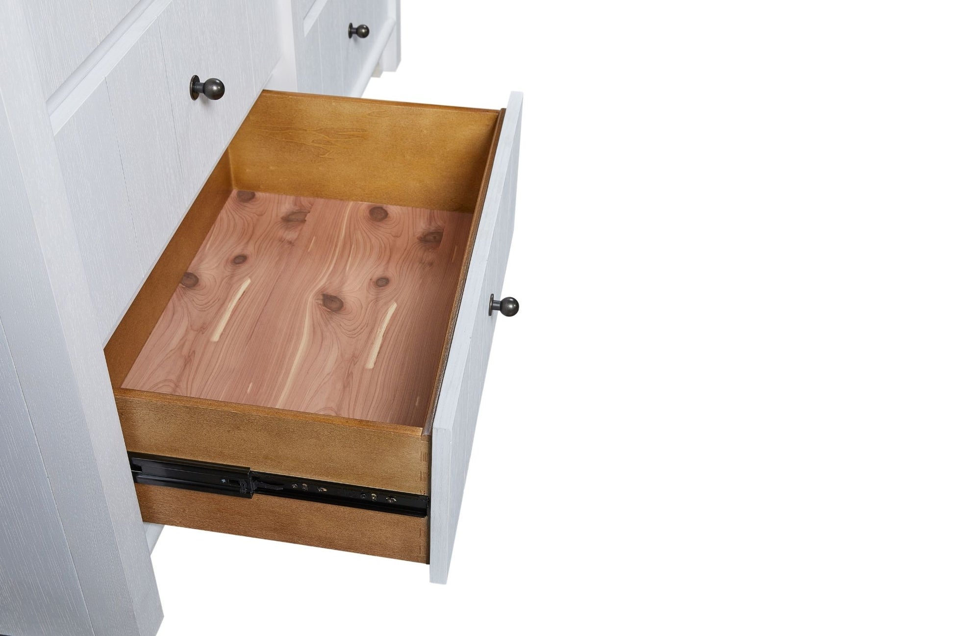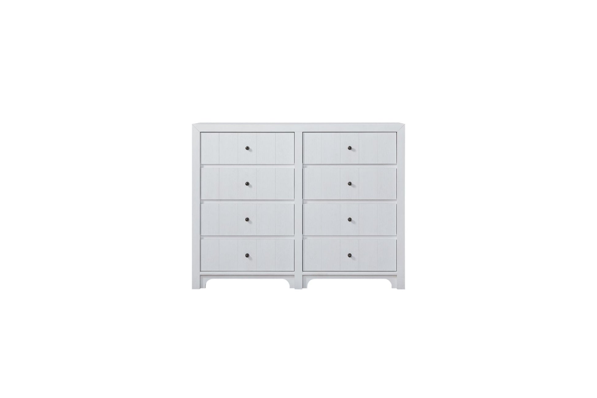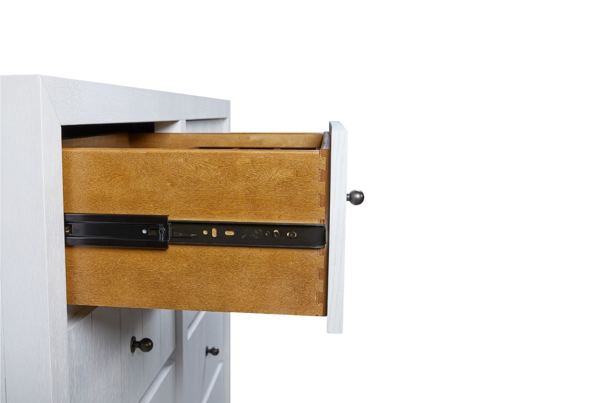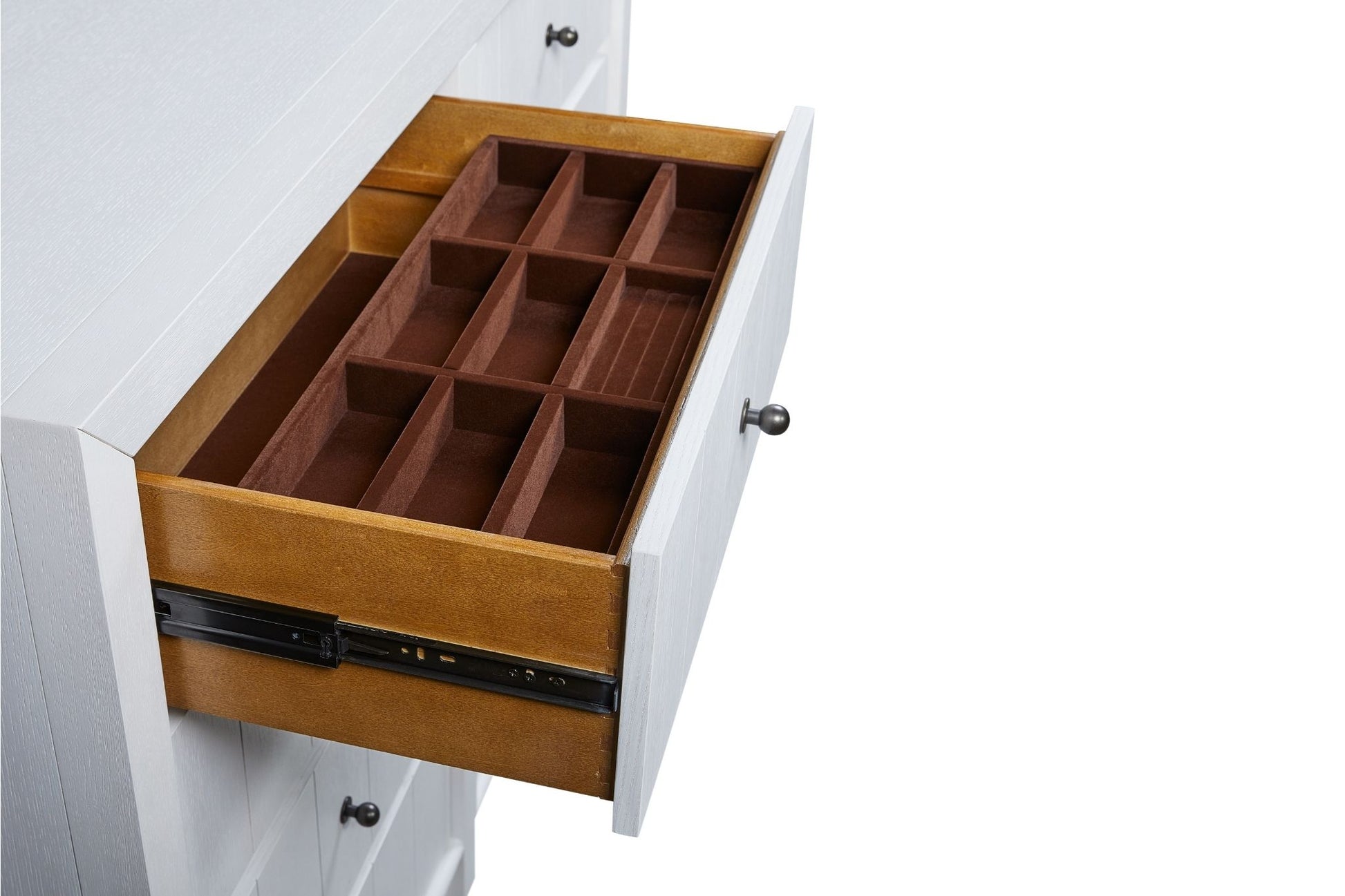 The Pleasant Hill Ivory Tall Dresser with Jewelry Box combines elevated function with a soft, sophisticated style. Crafted from American white oak in a bright ivory finish, this piece features eight soft-closing drawers, including a velvet-lined top drawer designed for jewelry storage. Its tall, slender profile makes it perfect for maximizing space without sacrificing storage. Subtle curves, refined hardware, and the collection’s simply chic aesthetic come together in a beautifully balanced design. It’s an elegant solution for keeping your wardrobe and accessories neatly organized.
