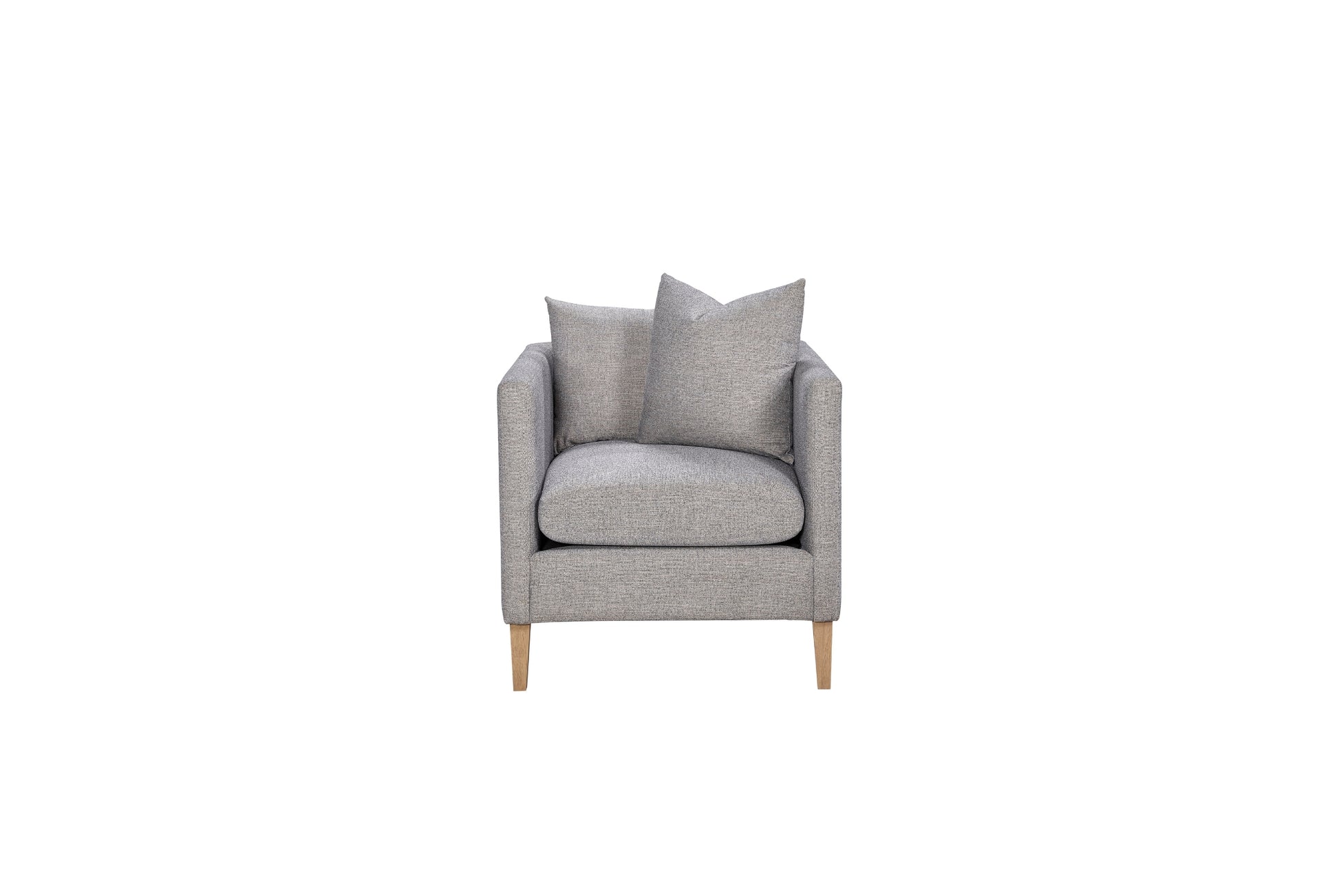 The Smoke Accent Chair & Ottoman on Leg delivers relaxed sophistication with a tailored touch. Upholstered in a soft smoke fabric, the set features clean lines, wooden legs, and two matching pillows for added comfort and cohesion. The ottoman offers a perfect spot to kick back or serve as extra seating when needed. Whether styled solo or paired with the matching sofa or loveseat, this duo adds charm and versatility to any space.