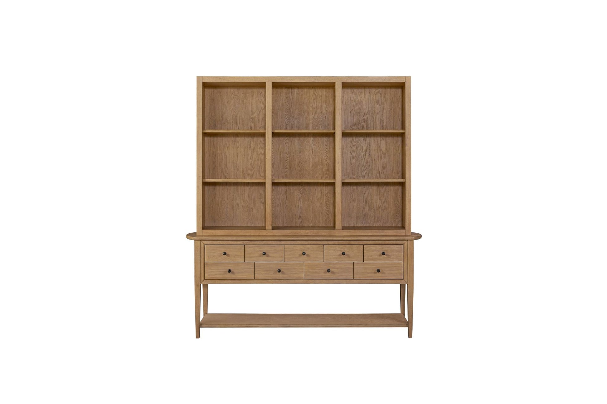 The Pleasant Hill Suede 2-Piece Credenza & Hutch offers refined storage and display with a warm, inviting finish. The credenza provides ample drawer and cabinet space to keep essentials organized, while the hutch adds vertical storage with open shelving for books, décor, or office accessories. Thoughtful craftsmanship and understated details give this piece a simply chic appeal. Perfect for home offices or living spaces, it brings both function and elegance to your everyday routines.