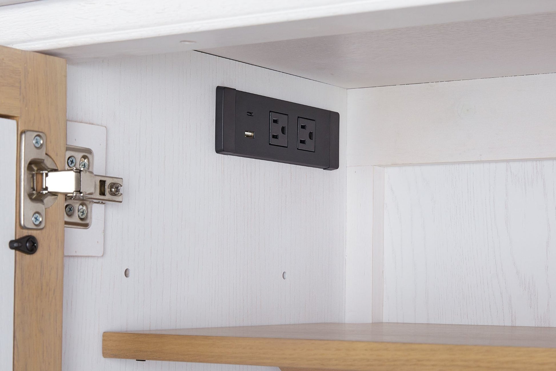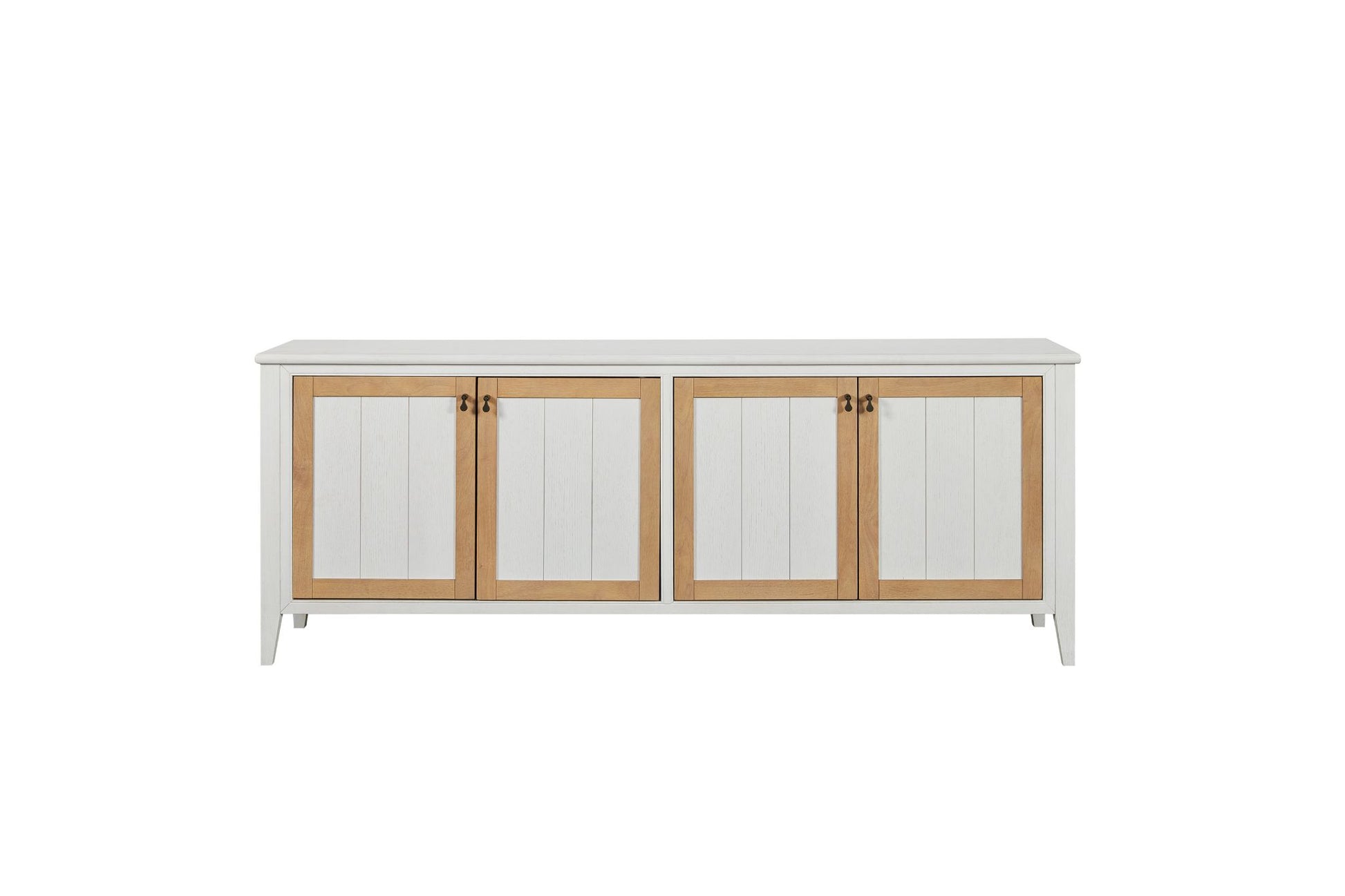 The Pleasant Hill Suede and Ivory 84" Console with Power Outlet blends soft contrast and smart functionality in a beautifully crafted design. Featuring an ivory finish accented by suede-outlined, double-paneled doors, this piece brings depth and subtle sophistication to any room. Two spacious cabinets offer generous storage, while black hardware adds a modern touch. A built-in power outlet makes it easy to keep devices charged and organized, making this console as practical as it is stylish.