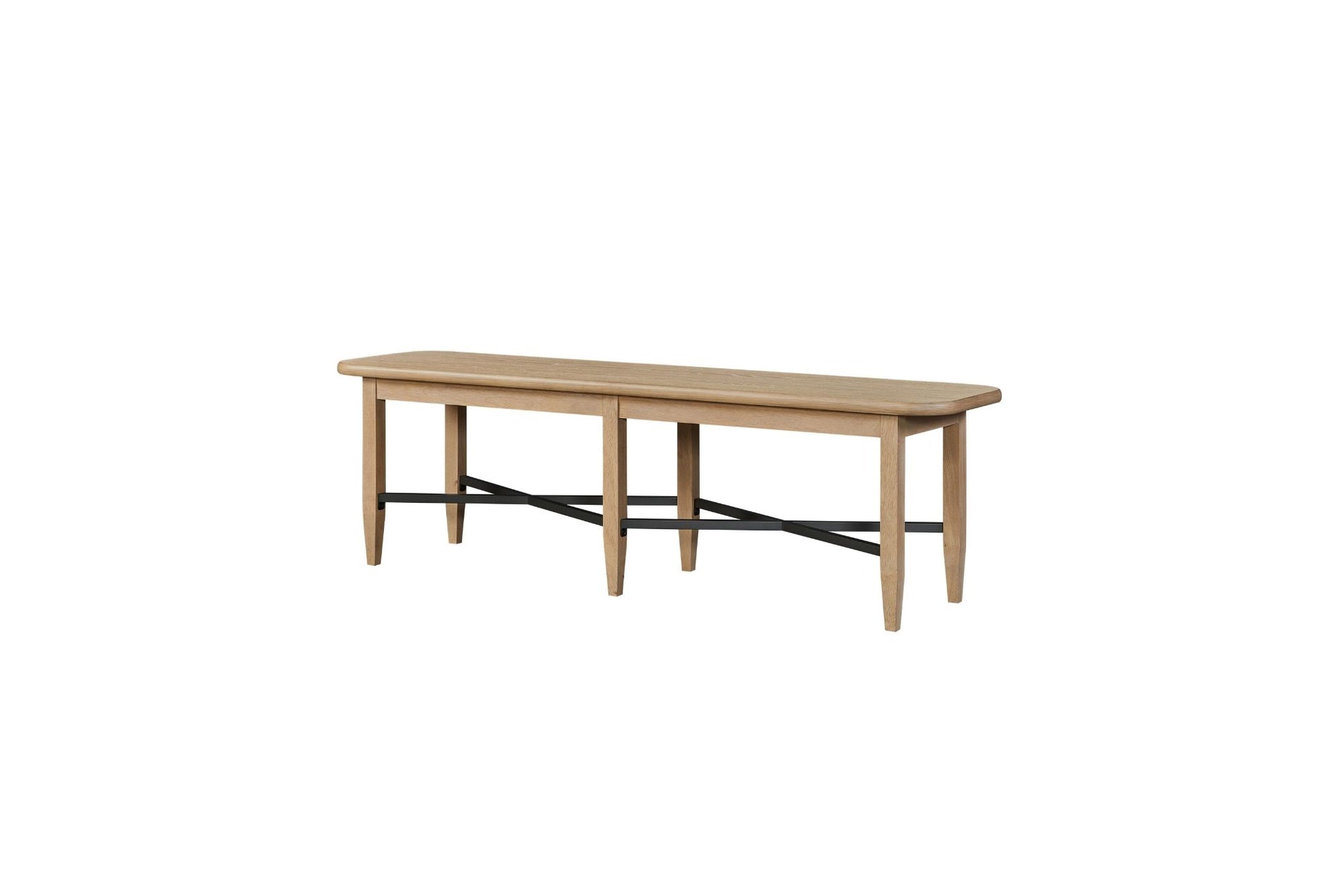 The Pleasant Hill Suede Bench brings warm, modern charm to any space with its natural wood tones and sleek design. A matte black metal stretcher adds bold contrast, enhancing both stability and style. Its clean lines and tapered legs create a timeless silhouette that complements a variety of interiors. Perfect for the foot of your bed, this bench offers extra seating or a spot to organize throws, pillows, or everyday essentials. A versatile piece that combines elegance with everyday function.